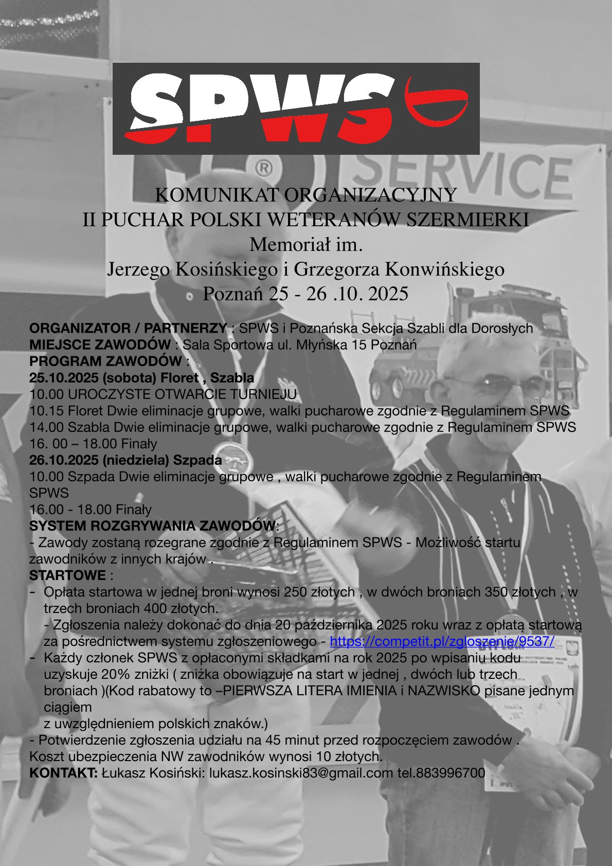 >>> Komunikat Organizatora – II Puchar Polski Weteranów w szermierce – Poznań 2025